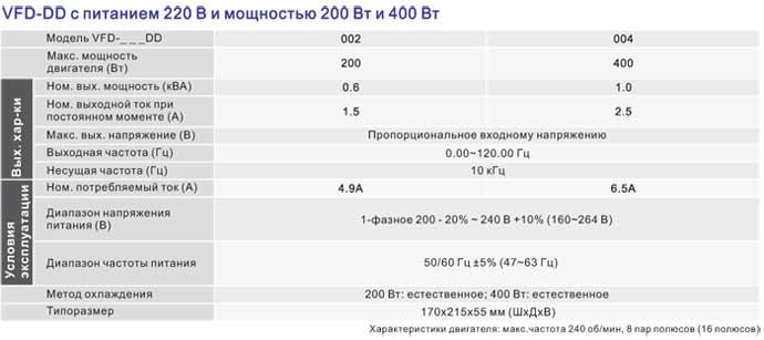 - Диапазон мощности: 1ф/220В 200Вт, 400Вт;