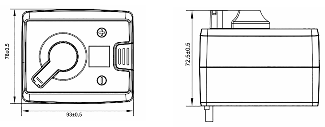 Привод снабжён рукояткой, позволяющей вручную изменять положение клапана. Для ручного режима необходимо нажать кнопку разблокировки и повернуть рукоятку в нужное положение. Чтобы вернуть устройство в автоматический режим, следует отпустить кнопку блокировки.