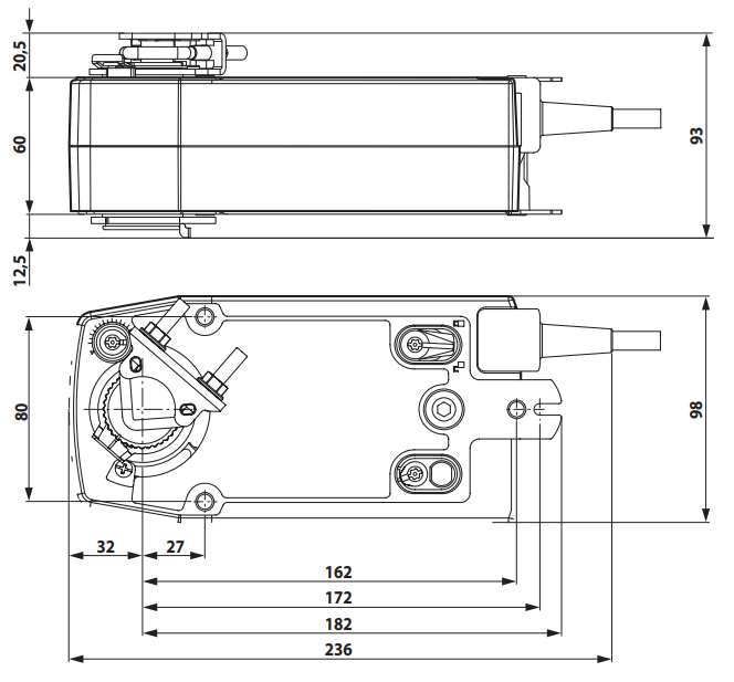- Для управления воздушными заслонками площадью приблиз. до 2,0 м2;