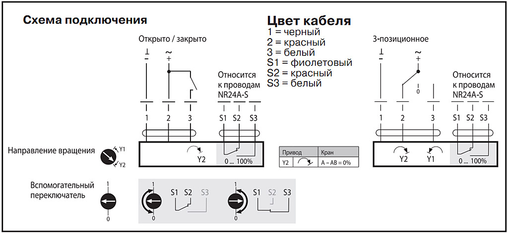 Электроприводы NR…S оснащены одним настраиваемым 0…100% переключателем.