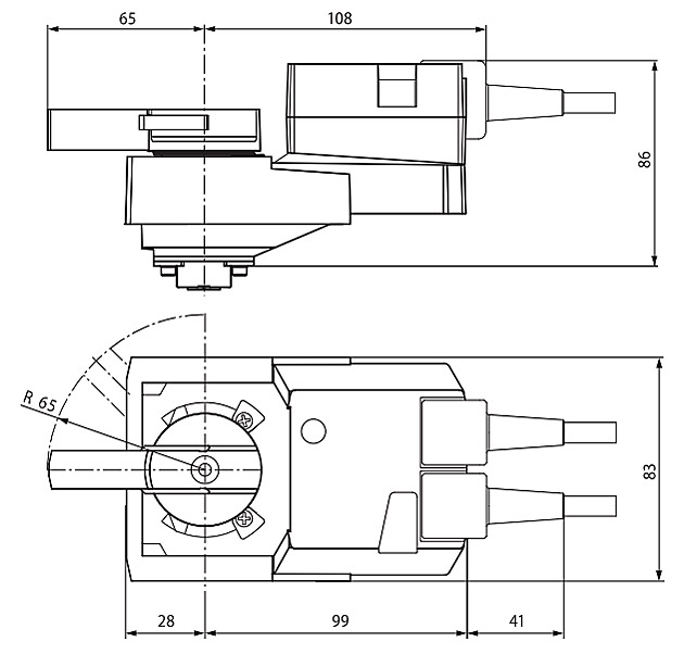 Электропривод защищен от перегрузки, не требует конечных выключателей и останавливается автоматически при достижении конечных положений.