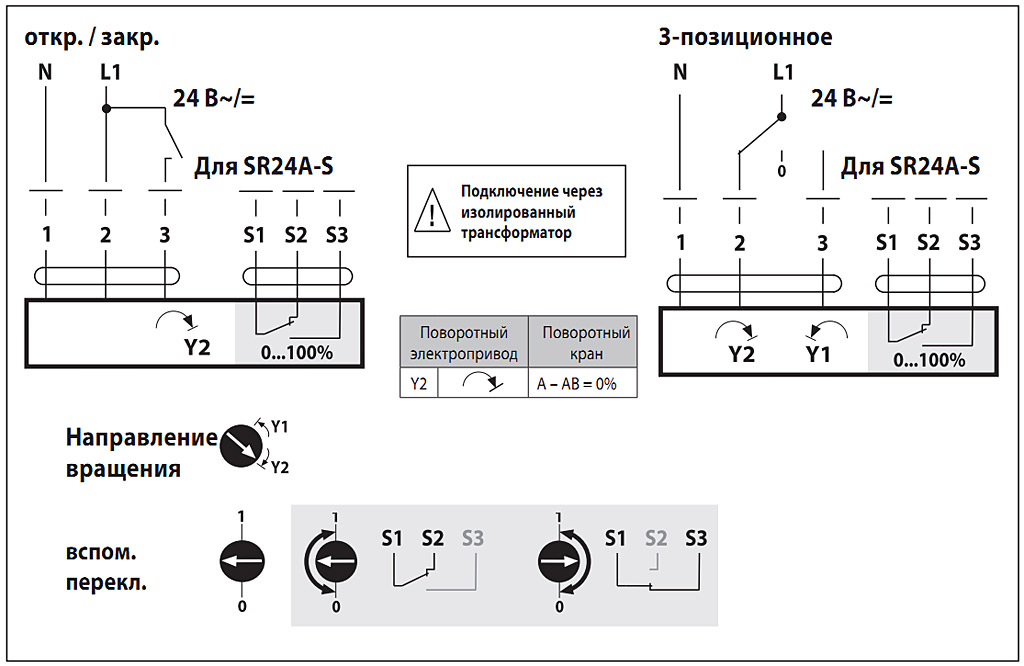 Гибкая система сигнализации с настраиваемым вспомогательным переключателем (0…100%) (для SR24A-S).