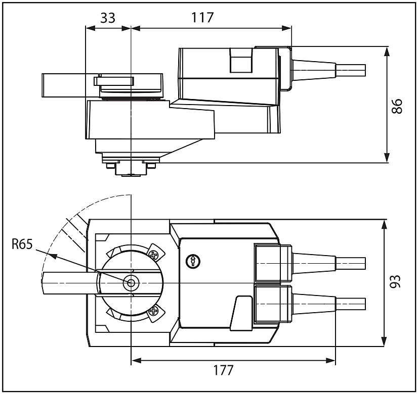Электропривод защищен от перегрузки, не требует конечных выключателей, останавливается автоматически при достижении конечных положений.