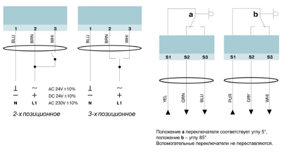 Вспомогательные переключатели | 2 х SPDT, 5° и 85° 3 (1.5) A / 230В |