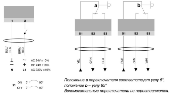 Вспомогательные переключатели | 2 х SPDT, 5° и 85° 3 (1.5) A / 230В |