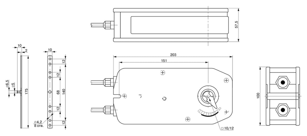 Габаритные размеры электропривода с возвратной пружиной Vilmann TAFA1-08ST