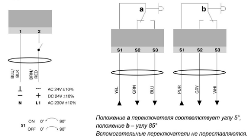 Вспомогательные переключатели | 2 х SPDT, 5° и 85° 3 (1.5) A / 230В |