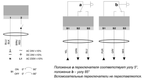 Вспомогательные переключатели | 2 х SPDT, 5° и 85° 3 (1.5) A / 230В |