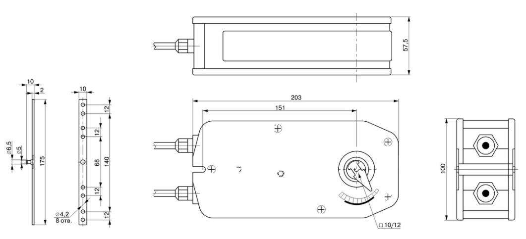 Габаритные размеры электропривода с возвратной пружиной Vilmann TAFA1-05S