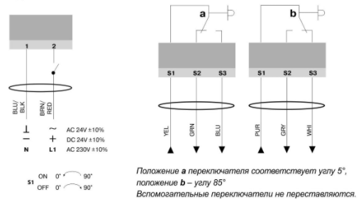 Вспомогательные переключатели | 2 х SPDT, 5° и 85° 3 (1.5) A / 230В |