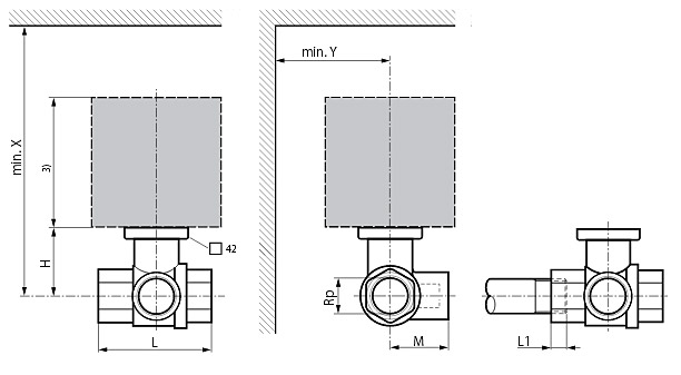 DN [мм] | Rp [дюймы] | L [мм] | H [мм] | M [мм] | L1(1) [мм] | X(2) [мм] | Y(2) [мм] | Вес [кг] |
