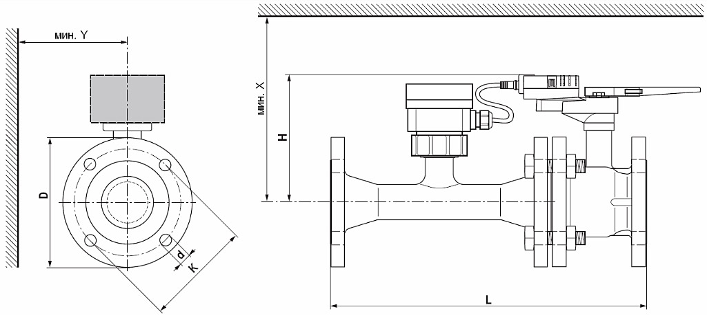 DN [мм] | L [мм] | H [мм] | D [мм] | K [мм] | d [мм] | X1) [мм] | Y1) [мм] | Вес [кг] |