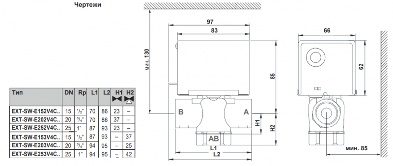 Технические характеристики зонального клапана BELIMO EXT-SW-E202V4C7