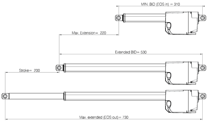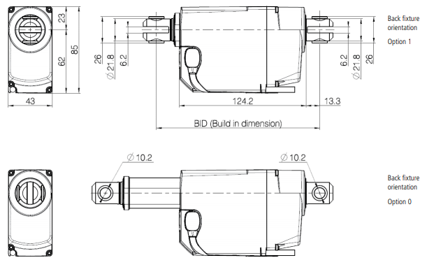 Габаритные размеры линейного сервопривода LA23 DESKLINE
