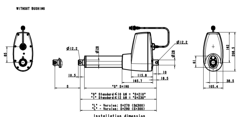 - Высокая боковая нагрузка для повышения безопасности: Допустима боковая нагрузка до 1,000 Н без повреждения актуатора;