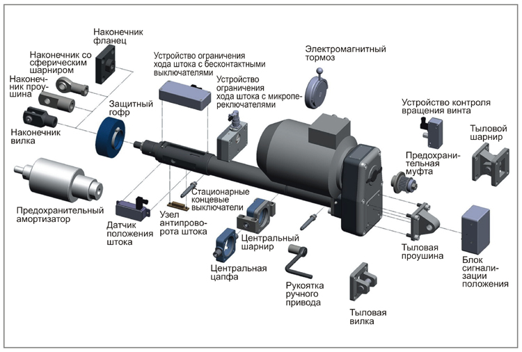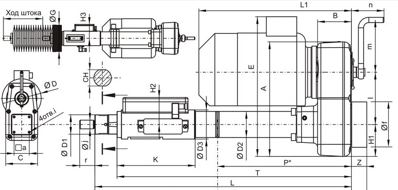 Изменение направления вращения электродвигателя обеспечивает изменение направления движения штока - выдвижение либо втягивание.