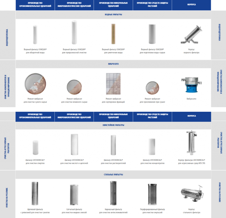 Ассортимент фильтров для производителей агрохимии