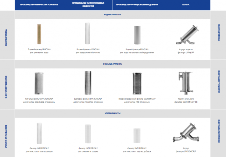 Ассортимент фильтров для производителей химических реагентов