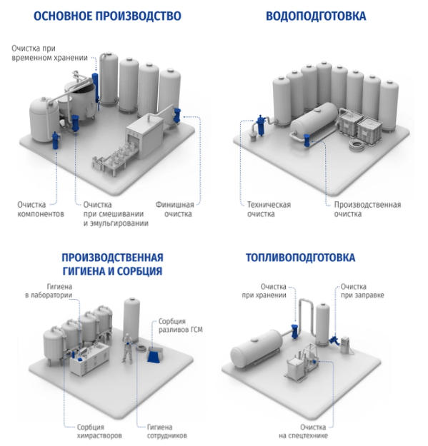 Оборудование эффективно очищает сырьё и готовую продукцию от взвесей, осадка и механических примесей, улучшая стабильность растворов.