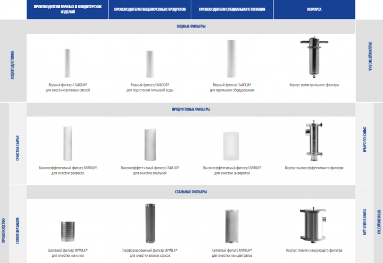 Фильтры UVMILK обеспечивают получение гомогенных начинок, конфитюров, воздушных мучных изделий, конфет и печенья, полностью соответствующих рецептуре и стандартам качества.