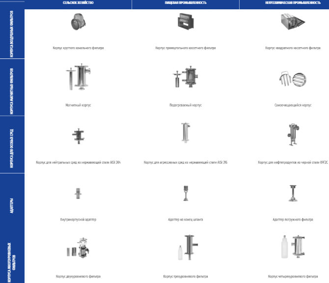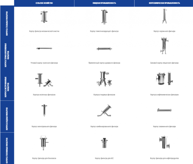 Чулочные, мешочные и рукавные фильтры помогают очищать молоко и сыворотку, растительные и минеральные масла, алкогольные и безалкогольные напитки, крахмальное молоко, сиропы, воздух, клеи и краски, реагенты и нефтепродукты. Угловой корпус чулочного фильтра укомплектован пружиной, на которую одевается фильтр. Рукавный фильтр может устанавливаться либо в корпус чулочного фильтра с помощью адаптера, либо в специальный прямоточный корпус рукавного фильтра. Мешочный фильтр используется в корпусе корзинного фильтра.