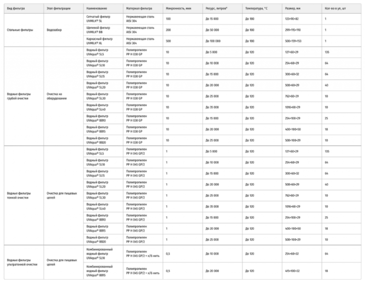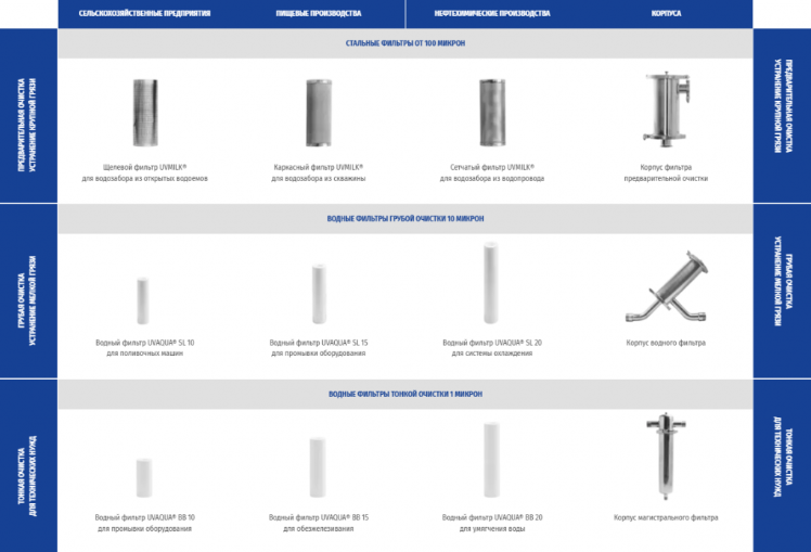 Ассортимент водных фильтров UVAQUA