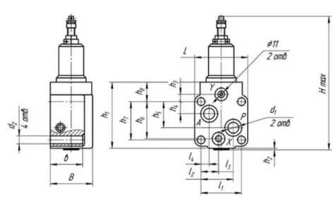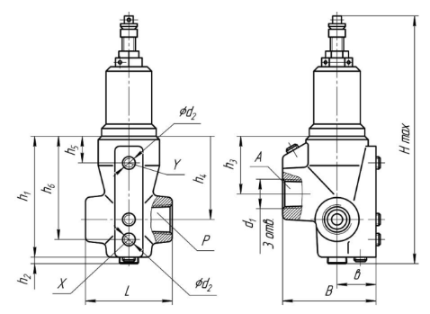 Размеры гидроклапана давления типа Г54-35 (трубное присоединение)
