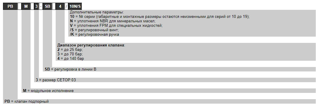 Клапан подпорный PBM3-SB* (CETOP 3, модульное исполнение)