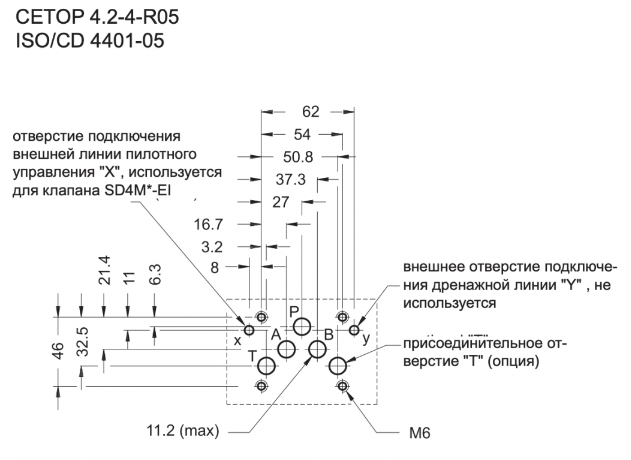 - = Монтажная поверхность с уплотнительными кольцами 5 шт. типа OR2050 1 шт. типа OR2037 (только для SD4M*-EI)