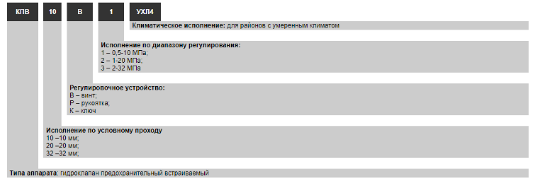 Обозначение | Клапан КПВ10 | Клапан КПВ20 | Клапан КПВ32 |