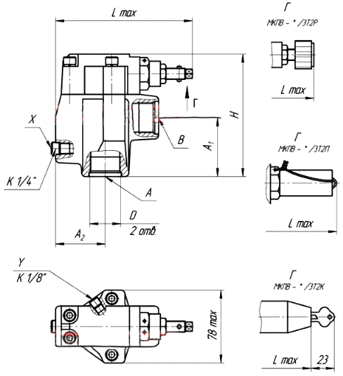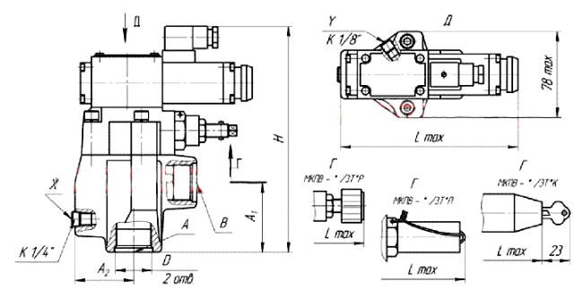 Гидроклапан МКПВ 32/3T4В * | 209 | 168 | 56 | 53 | M46x2 (G1 1/2") |