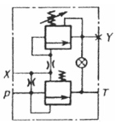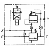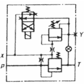 Предохранение гидросистемы от перегрузок, поддержание настроенного давления и дистанционная разгрузка путём соединения отверстия Х со сливной линией |