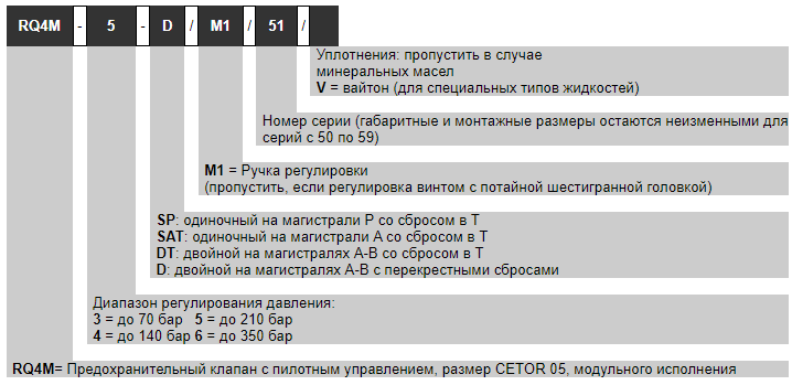 Клапан RQ4M представляет собой предохранительный перепускной клапан с пилотным управлением, выполненный в модульном исполнении с монтажной поверхностью, соответствующей стандартам CETOP и ISO.