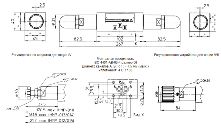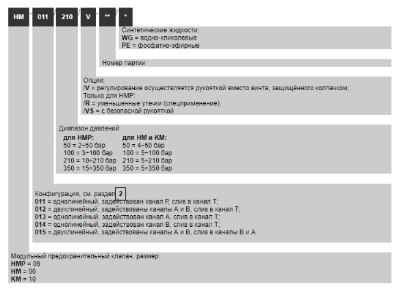 - HM - размер 06 по ISO4401; максимальный расход 120 л/мин; максимальное давление до 350 бар (35 МПа)