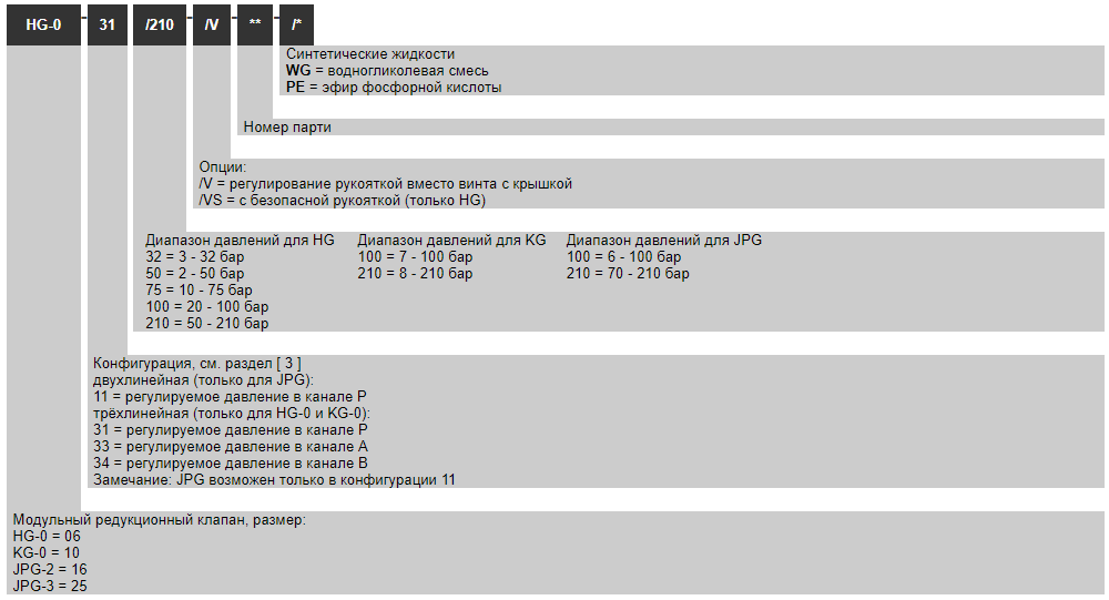 Клапан HG-031/210 HG-033/210 HG-034/210 |