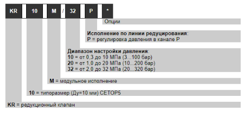 Гидроклапаны KR10M/10P, KR10M/20P и KR10M/32P представляют собой редукционные клапаны модульного исполнения с монтажной поверхностью, соответствующей стандартам CETOP 05 (NG10) и ISO (с диаметром Ду=10 мм).