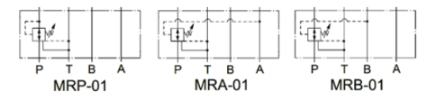 Гидроклапаны редукционные модульного монтажа MRP-01, MRA-01, MRB-01 (с диаметром Ду=6 мм) выполнены в модульном исполнении с монтажной поверхностью, соответствующей стандартам CETOP 03 и ISO.