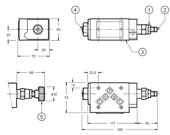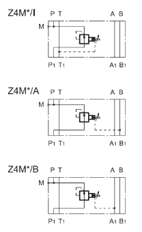 - Z4M*-I: снижение давления в магистрали P - дренаж соединен с магистралью T.