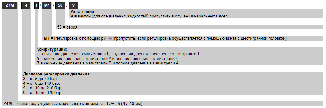 - Z4M*-A: снижение давления в магистрали A и полное давление в магистрали B.