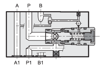 Компенсатор автоматически выбирает давление управления между магистралями A и B с помощью встроенного логического клапана «ИЛИ».