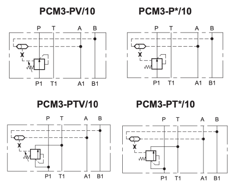 Чаще всего PCM3 используется в сочетании с пропорциональными распределителями (например, DSE3-A*), что позволяет регулировать поток независимо от изменений давления.