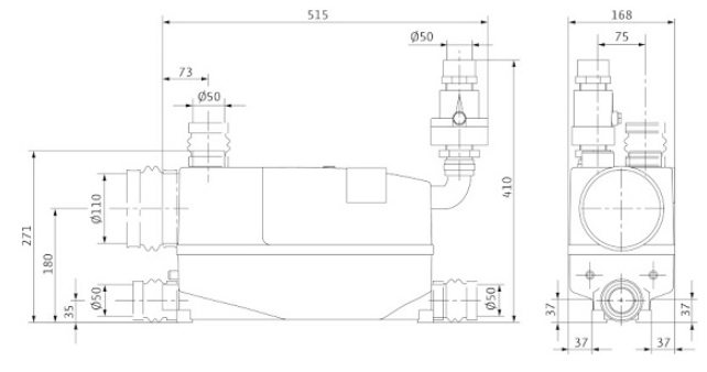 Модель DrainLift XS-F предусматривает ее монтаж в стеновую нишу (за фальшстеной). Глубина насоса XS-F - 168 мм.