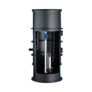 Резервуарная полиэтиленовая емкость-шахта объемом 368, 460, 552 или 664 литра, предназначенная для монтажа только в грунте и с подготовленными внутренними подключениями для установки канализационного насоса.