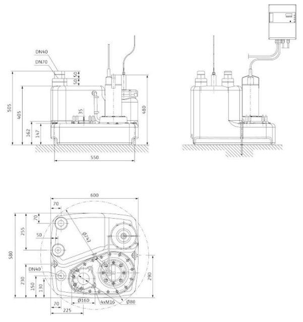 Габаритные размеры профессиональных насосных установок Wilo DrainLift M