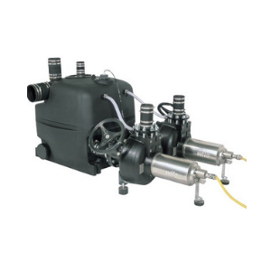 Установка DrainLift XXL оснащенная модулем управления с автоматическим режимом переключения насосов, включением в работу резервного насоса при пиковых нагрузках, сигнализацией рабочего состояния и неисправностей для каждого насоса, датчиком защиты мотора от перегрева и контроля герметичности, датчиком уровня.