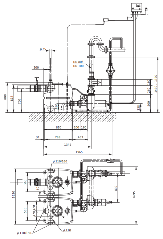Напорные штуцеры имеют DN 80 или DN 100.