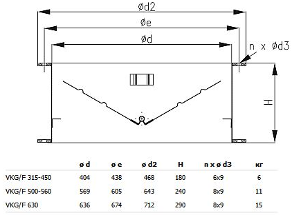 Автоматический клапан дымоудаления VKG/F применяется с крышными вентиляторами DVG-V.