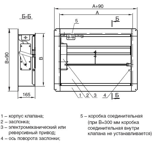 Схема конструкции клапана дымоудаления КЛАД-2 (КДМ-2 ) с электроприводом BELIMO: