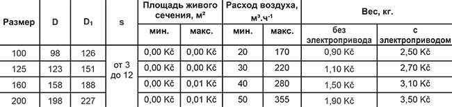 Относительно величины клапаны предназначаются для объемного расхода воздуха от 20 и до 350 м3.