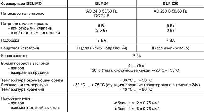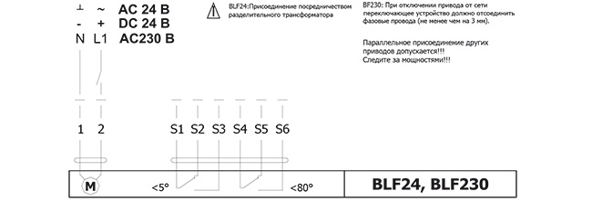 Схема подключения электропривода BELIMO BLF 24, BLF 230
